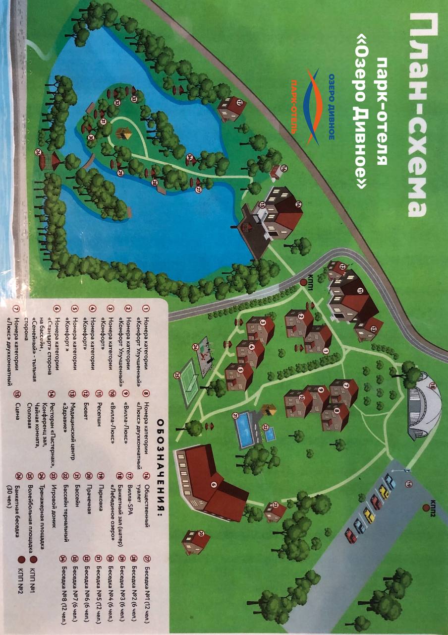 Трехзвездочный парк-отель «Озеро Дивное» в поселке Лазаревское Большого Сочи расположился на огромной территории. Это комплекс комфортабельных коттеджей-срубов, активно благоустраивающийся. Собственное зарыбленное озеро, где можно порыбачить – основная гордость гостиницы. До городского галечного пляжа, обустроенного навесами, 200 метров по территории отеля от коттеджей и корпусов, 30 метров - от эко-домиков глэмпинга и СПА-виллы. На территории парк-отеля «Озеро Дивное» в Лазаревском районе Сочи находится открытый бассейн с шезлонгами, бар, ресторан, столовая, банный комплекс, массажный кабинет, спортивные площадки. Для детей работают аниматоры (в высокий сезон), есть игровая площадка. В конференц-зале на 70 человек можно проводить различные деловые и торжественные мероприятия.