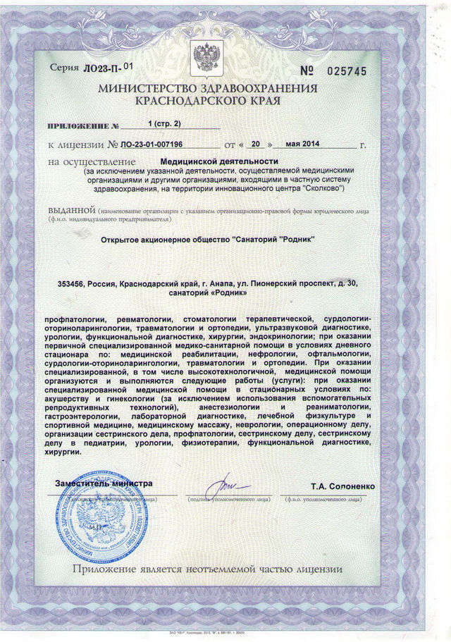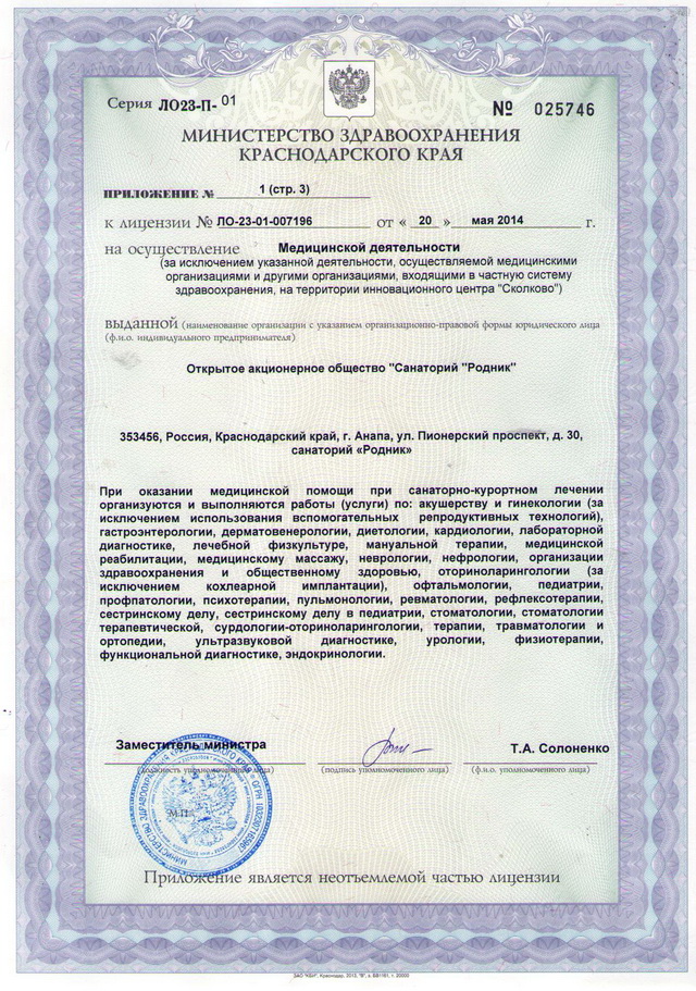 Санаторий «Родник» в Анапе является уникальной здравницей, которая предлагает своим гостям пройти множество различных целебных процедур. Но главная изюминка центра – это наличие бальнеологических источников минеральной воды на территории. Тут специализируются на лечении эндокринной и нервной систем, дыхательных путей, пищеварения.