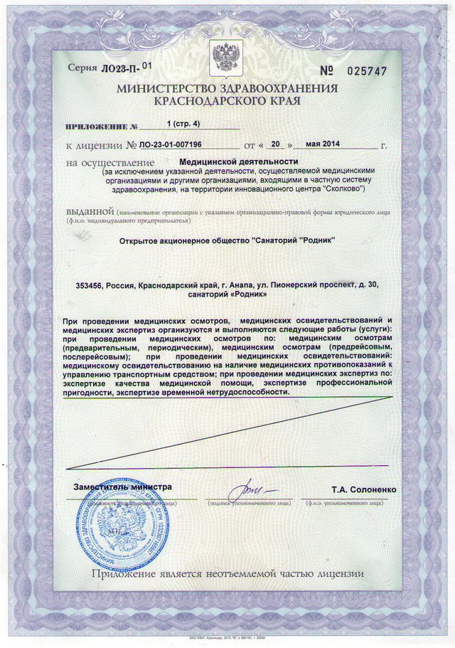 - Производится по записи ежедневно, в выходные (воскресенье)— праздничные дни лечебный корпус не работает (2025 г: 31 декабря; 2026 г: 1-2 января, 23 февраля, 9 марта, 1 и 9 мая, 12 июня, 4 ноября, 31 декабря) Рекомендуемая продолжительность 14 дней и более.