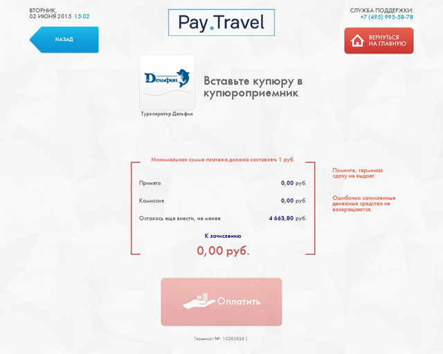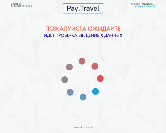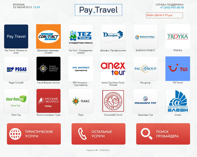 По всем вопросам оплаты, установке терминалов в офисе компании, подключении к терминалам обращайтесь по телефону: +7 (495) 995 58 78 или по электронной почте: info@pay.travel или задайте ваш вопрос на сайте через форму обратной связи: http://pay.travel/site/contacts.