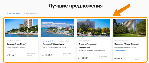 2. Лучшие предложения сформированы в отдельные подборки.